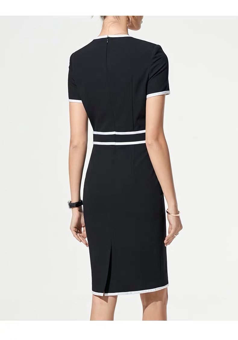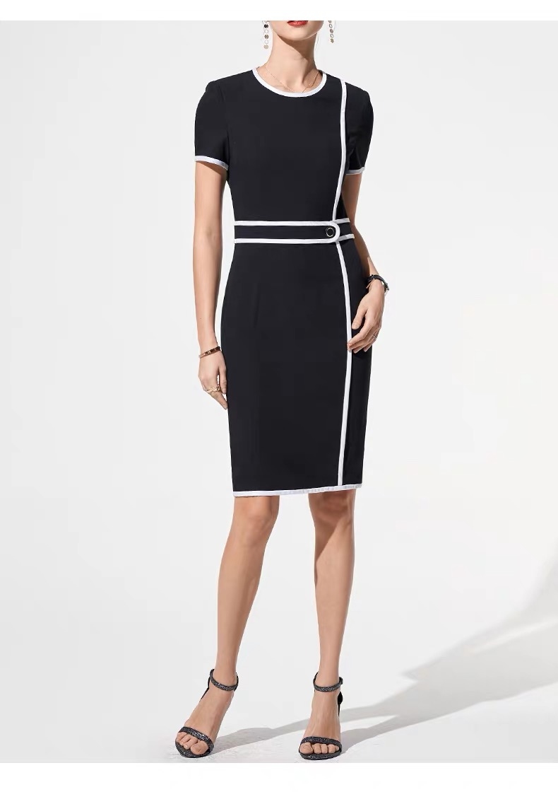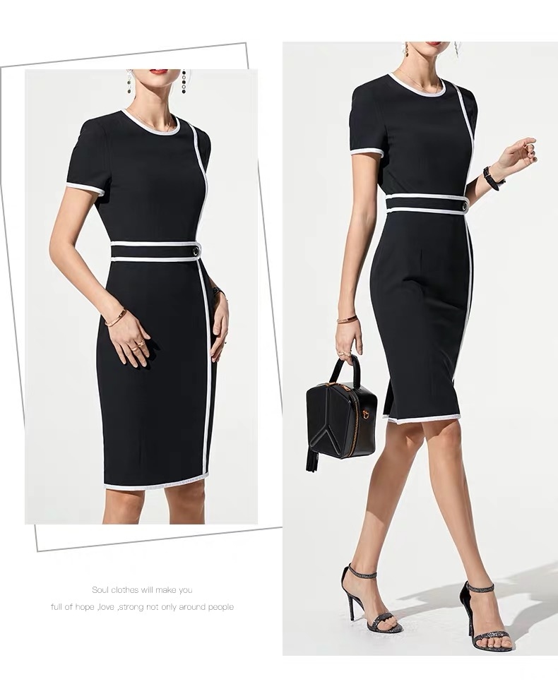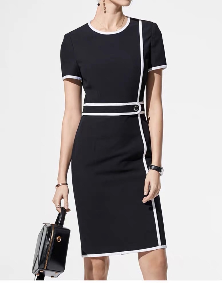 圓領極簡線條的設計洋裝,不需要任何的修飾,就是專業