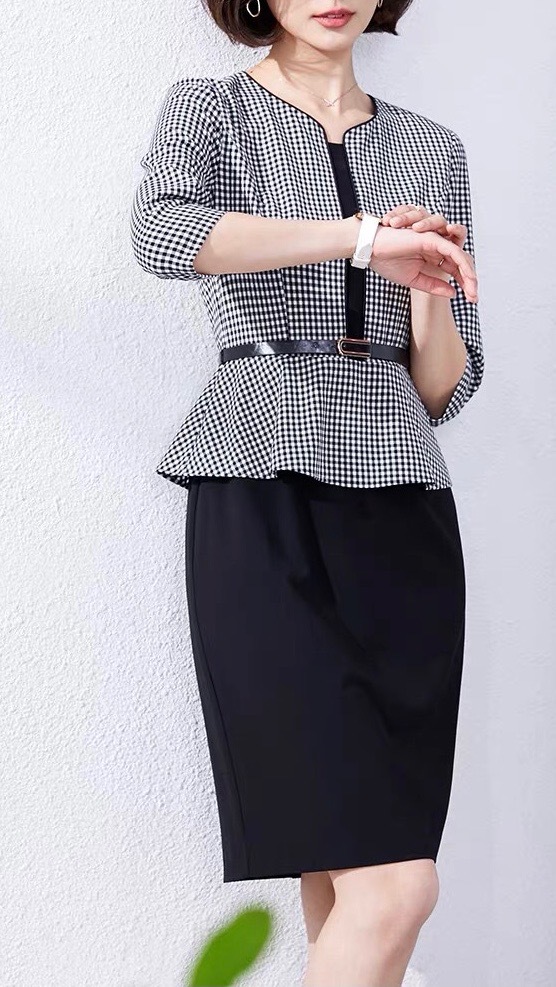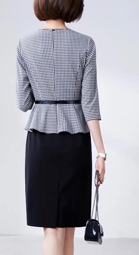 經典不變的黑白格上身設計,專業與浪漫的結合,顯瘦必備款式