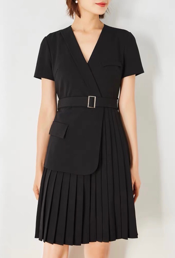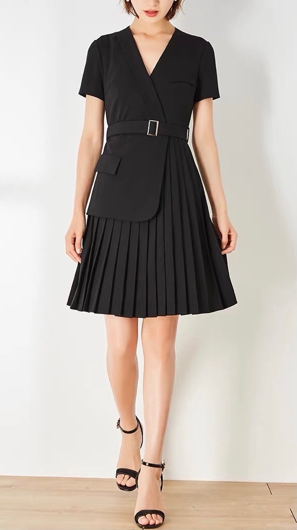 經典的西裝頂設計,對稱百摺的活潑,充滿設計感的洋裝,百變又優雅