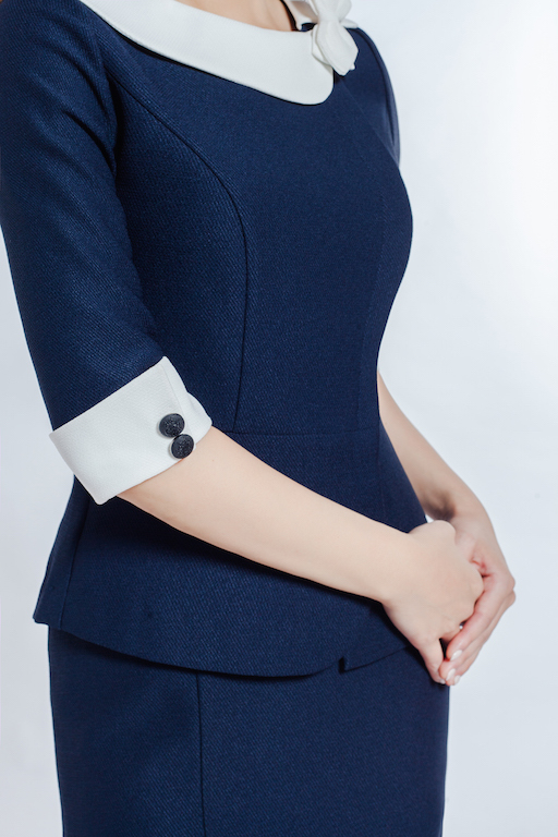 浪漫的不對領口設計,魚尾波浪裙套裝,