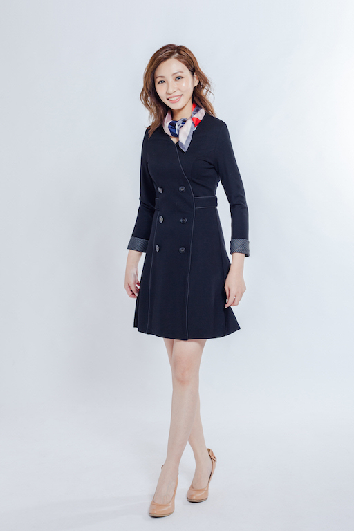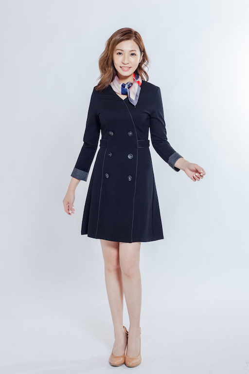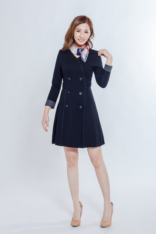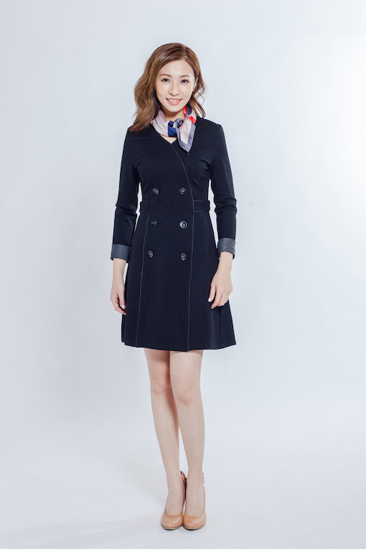 八片式立體剪裁純黑色洋裝,以法式經典領巾搭配,經典專業兼具