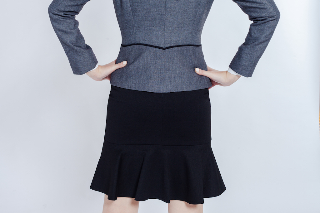 OL上班族專業套裝,裙子後側波浪的線條設計在專業的形象裡添加了一點活潑的氣氛